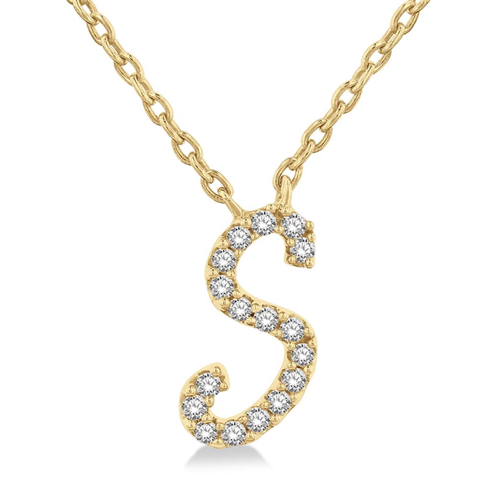 Personal and sparkling, this 14k yellow gold adjustable 16–18" script pendant necklace features the letter “S” adorned with 17 shared prong-set round single cut diamonds totaling 0.05 carats, with I/J color and I1–I2 clarity. Finished with a spring ring clasp, this charming necklace adds a meaningful and elegant touch to any jewelry collection.