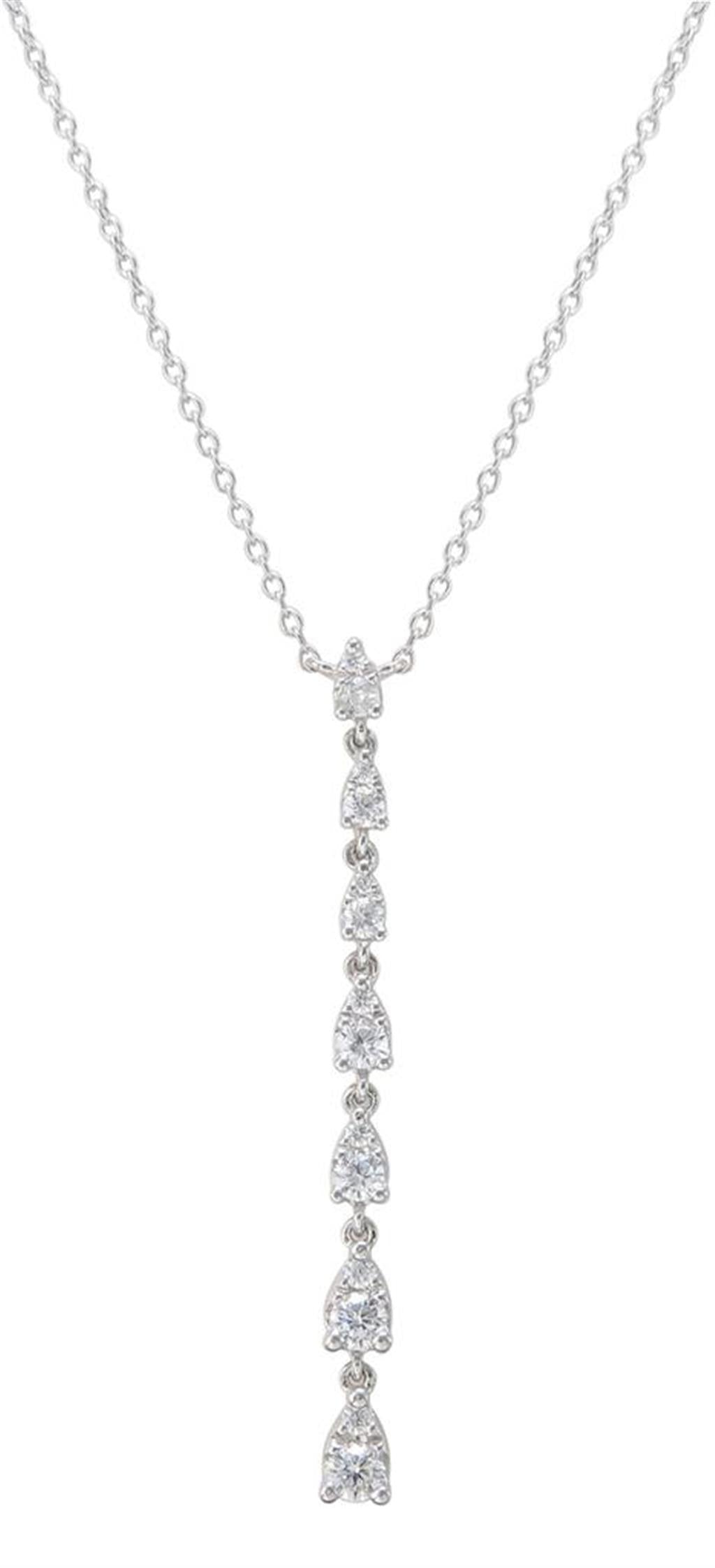 Crafted in luminous 14k white gold, this elegant drop necklace features 14 prong-set round diamonds with a total weight of 0.31 carats, radiating with H/I color and SI1 clarity. Each diamond is arranged to catch and reflect light beautifully, creating a refined sparkle that moves effortlessly from day to evening wear. Chain sold separately.