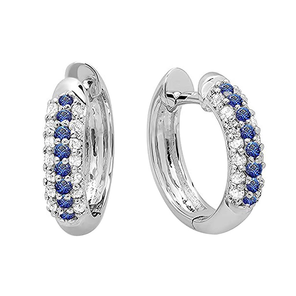 Davis Classics 14k White Gold Blue Sapphire and Diamond Huggie Hoop Earrings