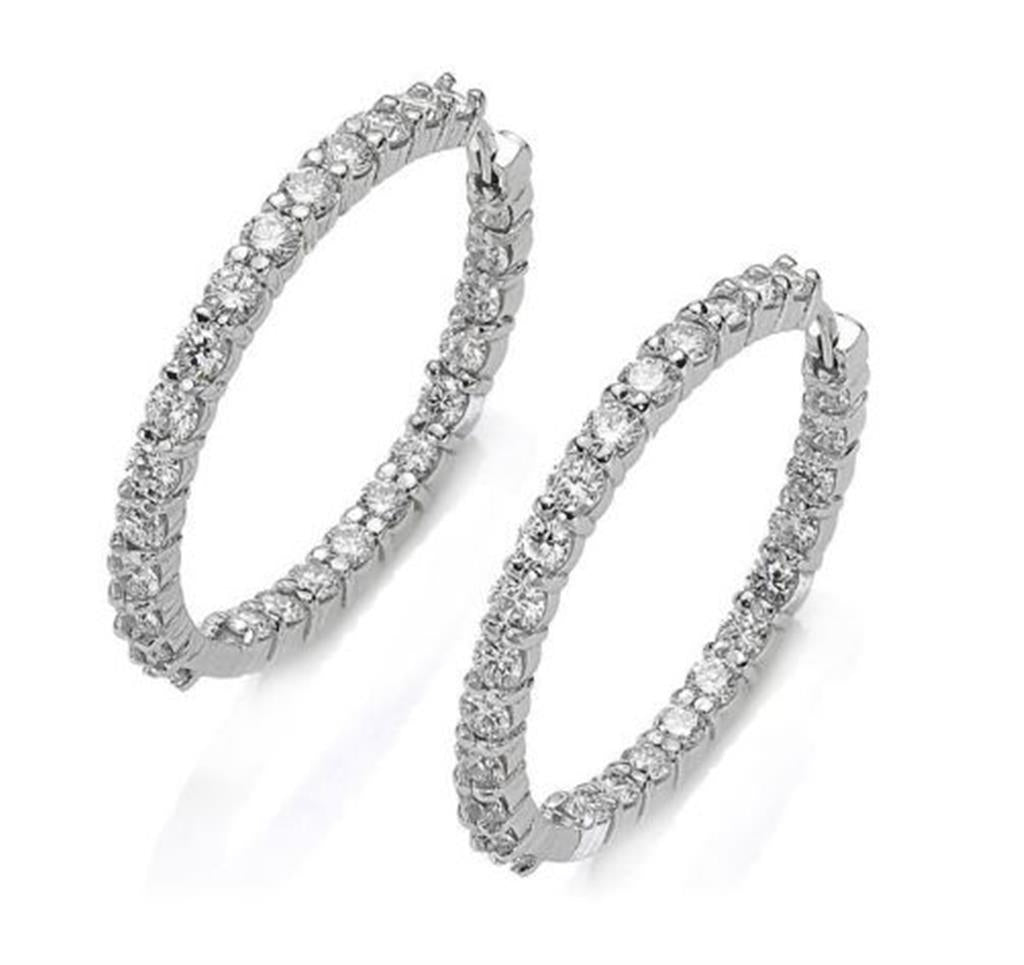 Davis Signature 14k White Gold 1-Inch In/Out Diamond Hoop Earrings