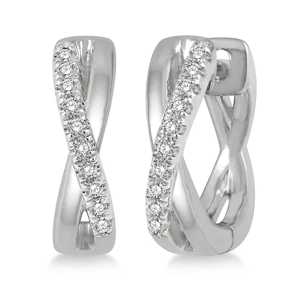 Davis Classics 14k White Gold Crossover Diamond Huggie Hoop Earrings