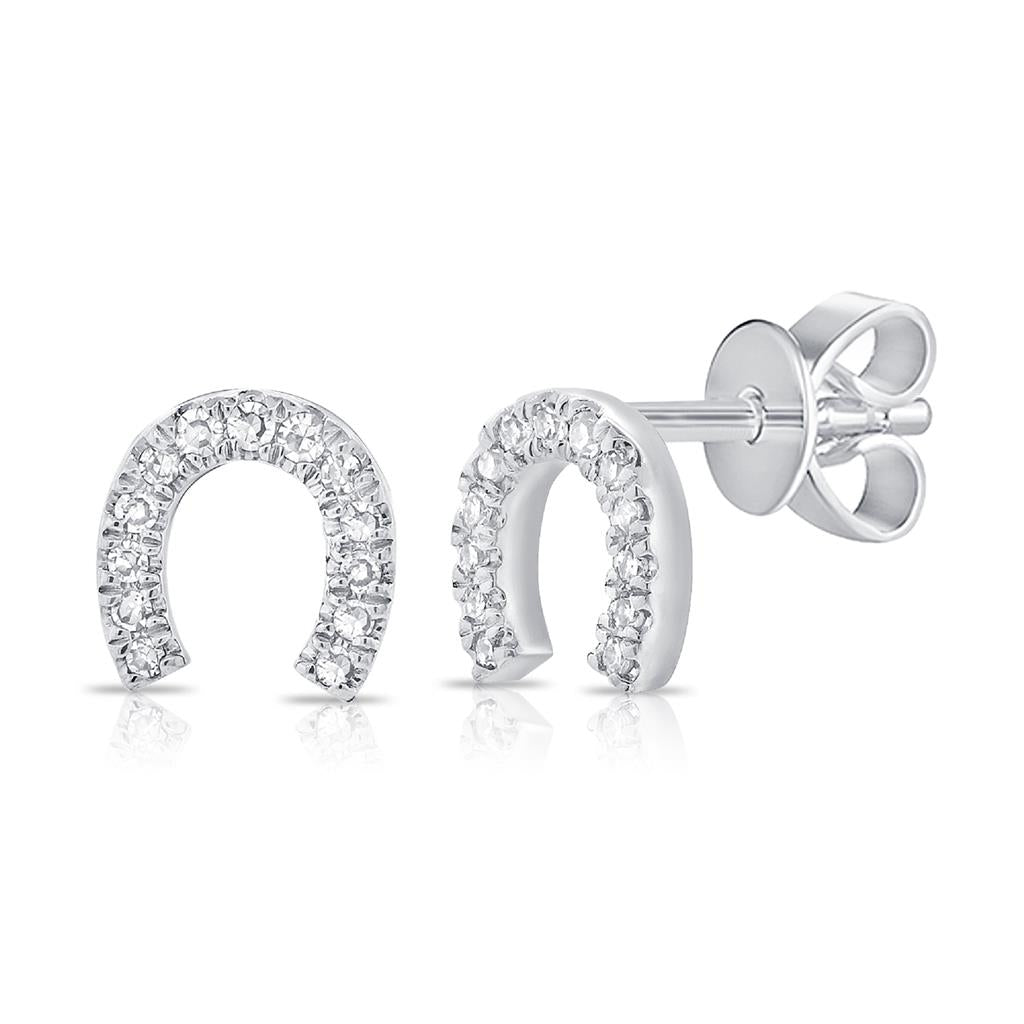 Davis Classics 14k White Gold Diamond Horseshoe Stud Earrings