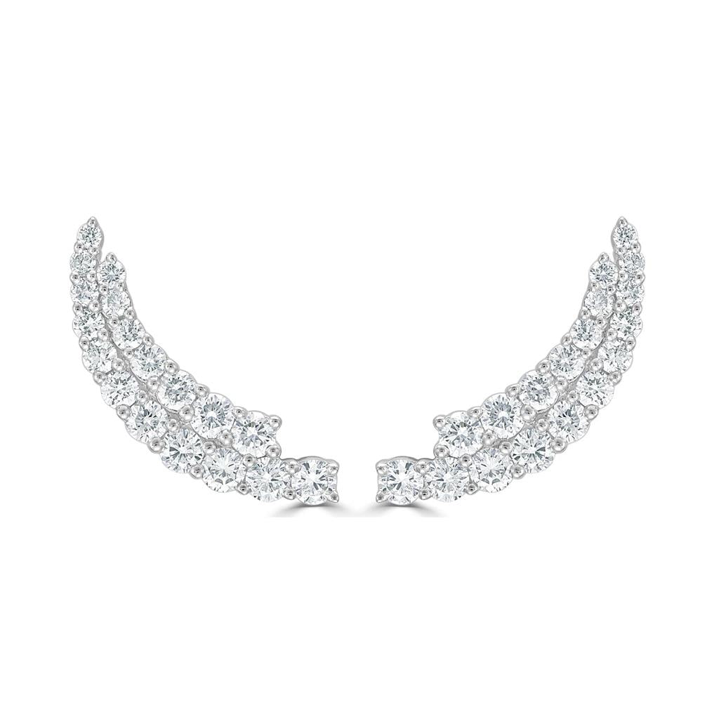 Davis Classics 14k White Gold Double Row Diamond Ear Climbers
