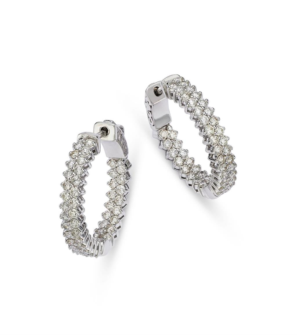 Davis Classics 14k White Gold In/Out Double Row Diamond Hoop Earrings