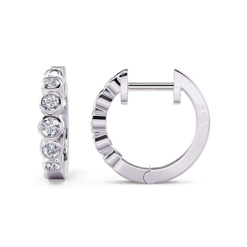 The Davis Classics 14k White Gold Small Huggie Hoop Diamond Earrings are a perfect blend of elegance and versatility. These refined huggie hoops feature 10 bezel-set round brilliant cut diamonds, totaling 0.27 carats, with G/H color and VS1-VS2 clarity. The bezel setting showcases each diamond's brilliance, while the sleek 14k white gold adds a modern touch. Secured with a locking full closure clasp for comfort and security, these earrings are ideal for everyday wear or special occasions. Their understated yet sophisticated design makes them a timeless addition to any jewelry collection.