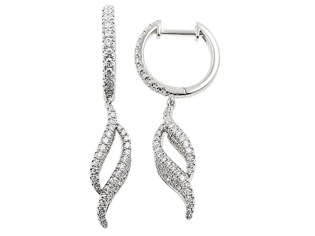 Elevate your style with these captivating Davis Luxe14k white gold swirl design diamond drop earrings. Featuring 144 pavé-set round brilliant cut diamonds totaling 0.61ctw of G/H color and VS1-VS2 clarity, these earrings dazzle with every turn. The intricate swirl design adds a touch of sophistication, while locking full-closure clasps ensure a secure fit. A radiant statement of elegance and craftsmanship.