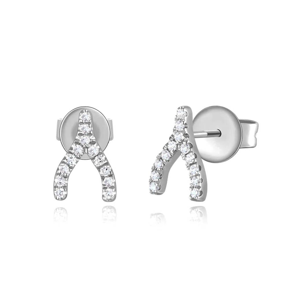 Davis Classics 14k White Gold Wishbone Diamond Stud Earrings