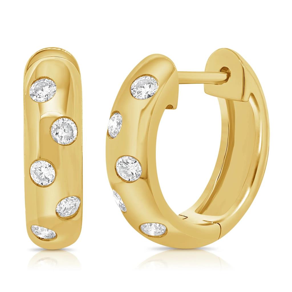 Davis Classics 14k Yellow Gold Confetti Diamond Huggie Hoop Earrings