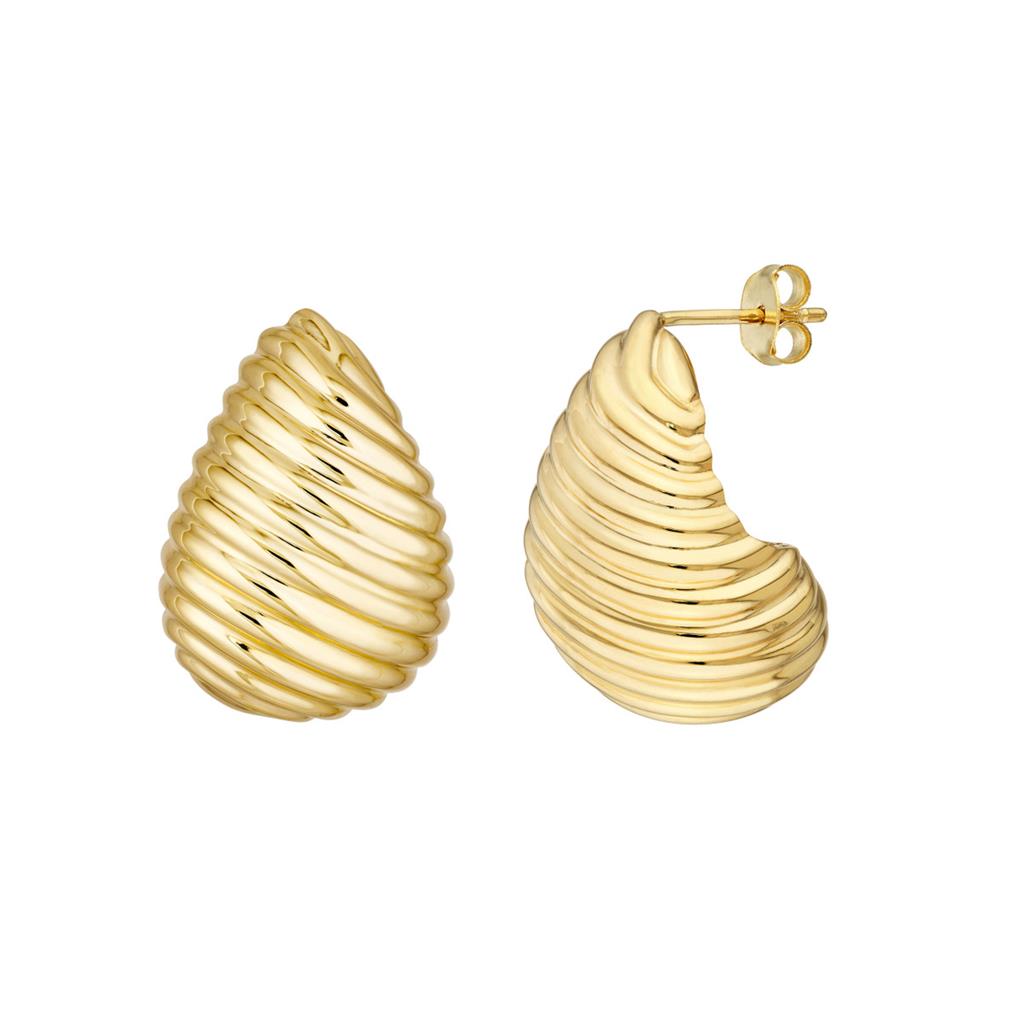 Davis Classics 14k Yellow Gold Teardrop Swirl Puff Earrings