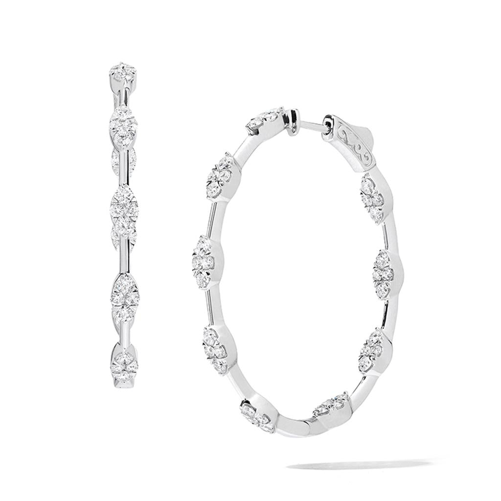 Davis Classics 18k White Gold Couture In/Out Station Style Diamond Hoop Earrings