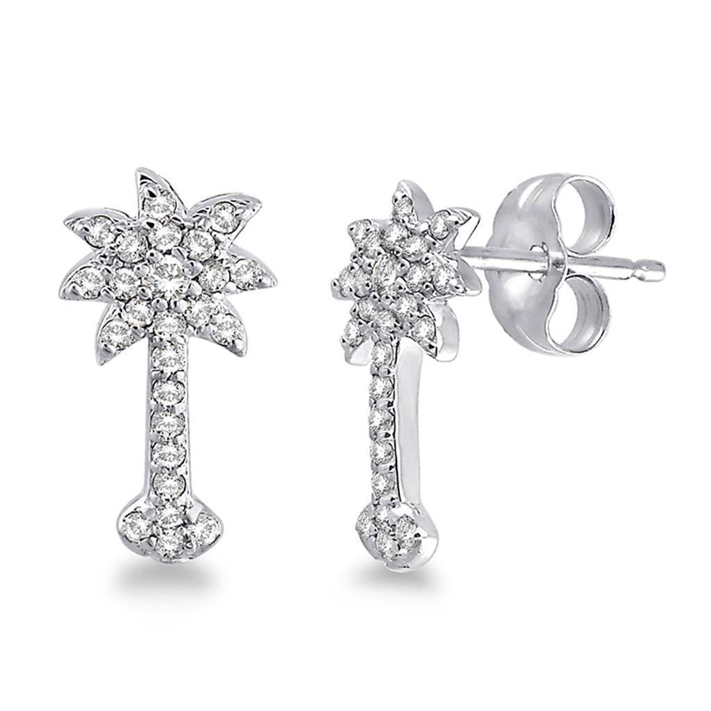 Bring a touch of tropical elegance to your style with these Davis Signature 14k white gold palm tree stud earrings. Featuring 16 shared bead-set round brilliant-cut diamonds, totaling 0.25 carats, with K/L color and I1-I2 clarity, these playful yet sophisticated earrings are secured with friction posts and backs, making them a sparkling accessory for any occasion.