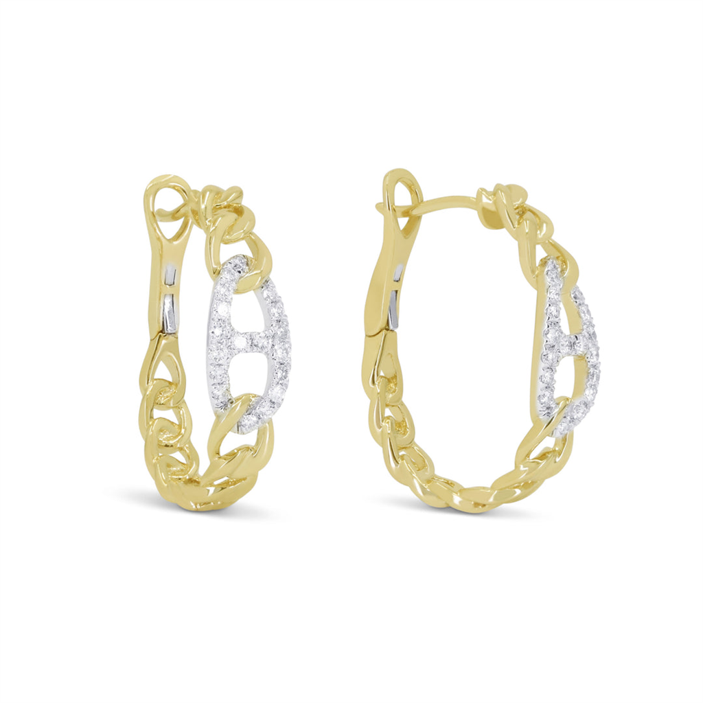 Davis Signature Yellow Gold Link Design Diamond Hoop Earrings