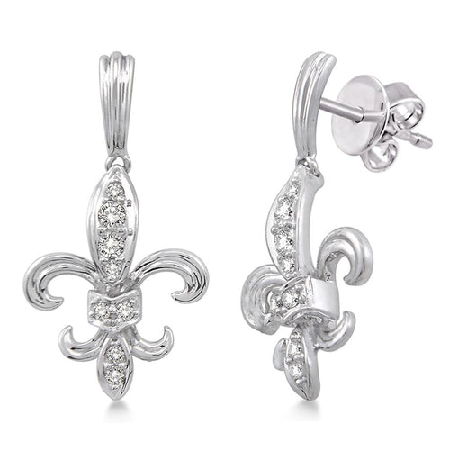 Davis Classics 14k White Gold Fleur De Lis Diamond Drop Earrings