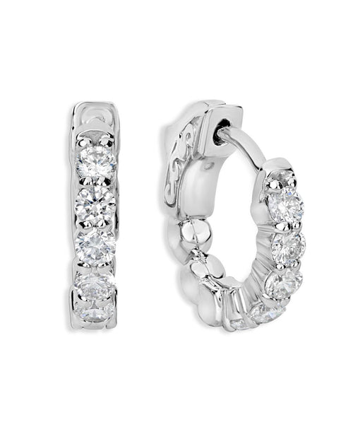 Davis Classics 14k White Gold Diamond Huggie Hoop Earrings