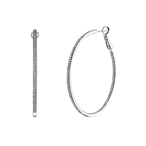 Davis Classics 14k White Gold In/Out Micropavé Diamond Hoop Earrings