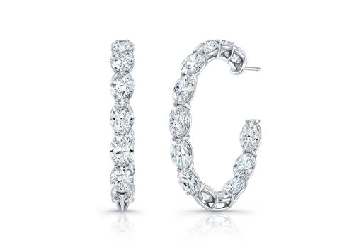 Davis Classics 18k White Gold In/Out Oval-Cut Diamond Huggie Hoop Earrings