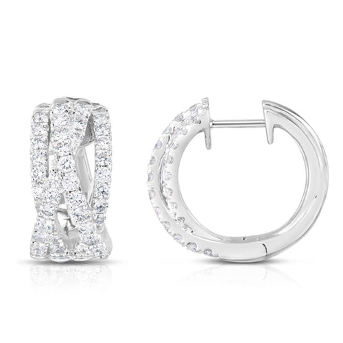 Davis Classics 14k White Gold Diamond Crossover Huggie Hoop Earrings