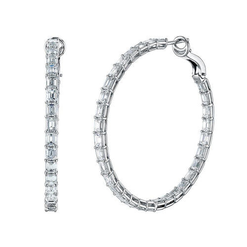 Davis Classics 18k White Gold 2" In/Out Emerald-Cut Diamond Hoop Earrings