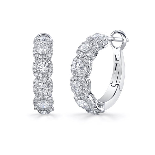 Davis Classics 18k White Gold Halo Diamond Huggie Hoop Earrings