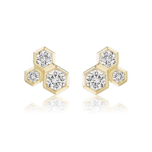 Davis Classics 18k Yellow Gold Hex Broadway Collection Diamond Cluster Stud Earrings