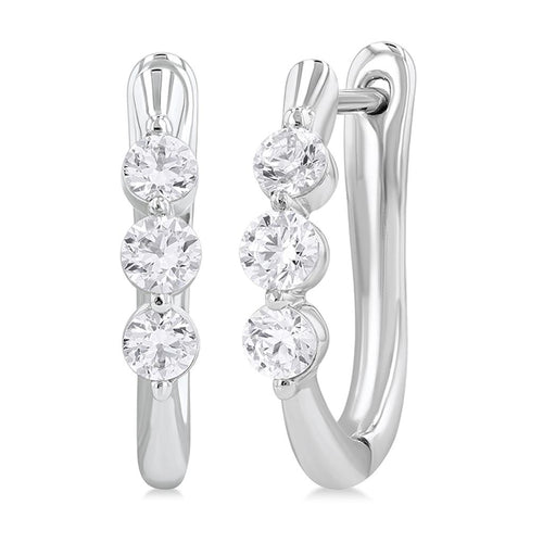 Davis Classics 14k White Gold Three Stone Diamond Hoop Earrings