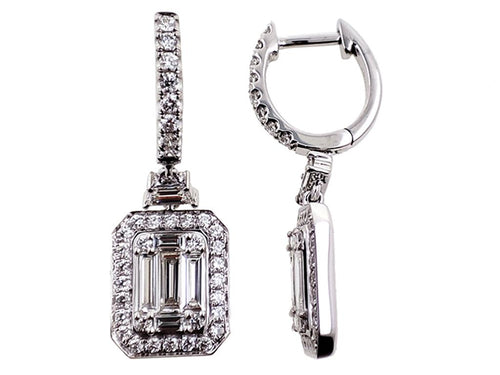 Davis Classics 18k White Gold Hex Broadway Triple Diamond Drop Earrings