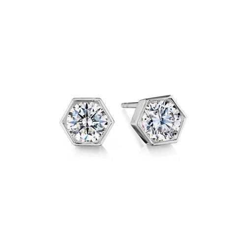 Davis Classics 18k White Gold Hex Broadway Diamond Solitaire Stud Earrings