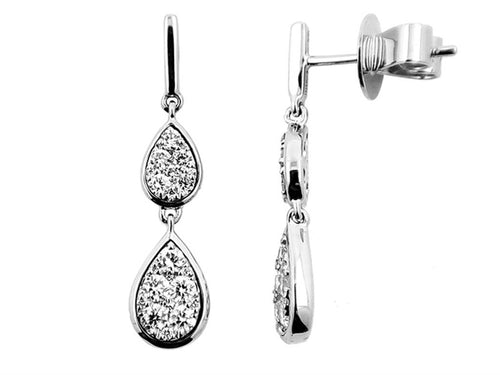 Davis Classics 14k White Gold Teardrop Diamond Drop Earrings