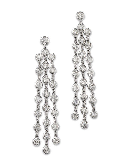 Davis Classics 14k White Gold Diamond by the Yard Triple Strand Dangle Earrings