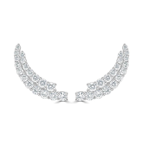 Davis Classics 14k White Gold Double Row Diamond Ear Climbers