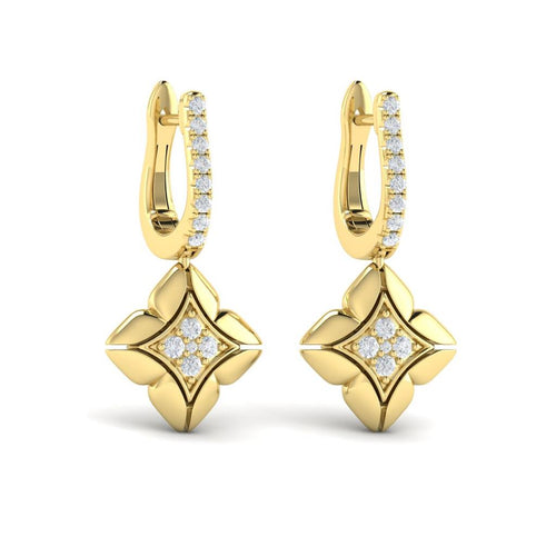 Vlora 14k Yellow Gold Estrella Collection Floral Quilt Motif Diamond Drop Earrings