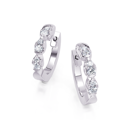 Davis Classics 14k White Gold Huggie Hoop Diamond Earrings