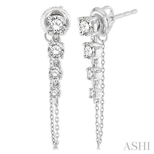 Davis Classics 14k White Gold Journey Diamond Chain Earrings