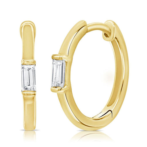 Davis Classics 14k Yellow Gold Emerald Cut Diamond Huggie Hoop Earrings