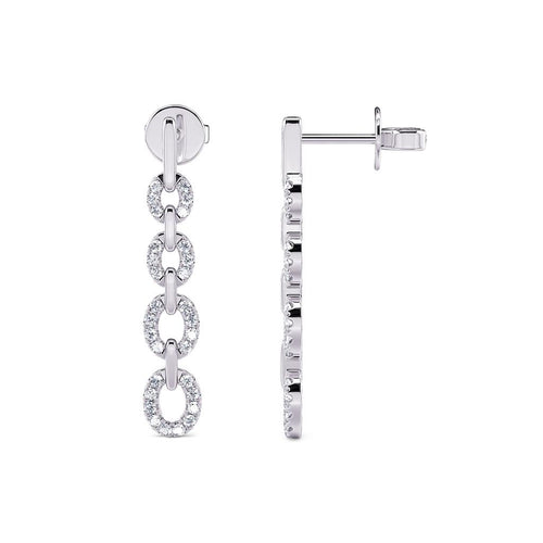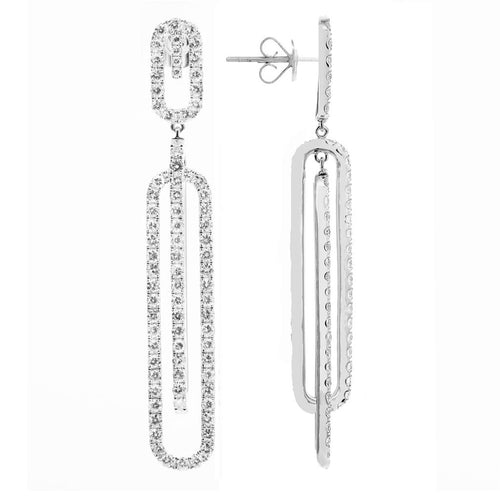 Davis Classics 18k White Gold Interlocked Paperclip Diamond Dangle Earrings