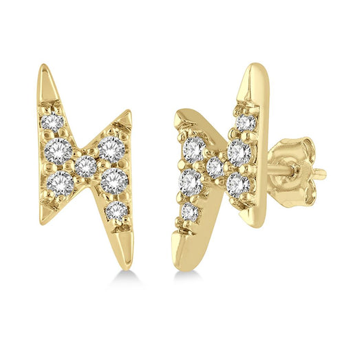 Davis Classics 14k Yellow Gold Diamond Lightning Bolt Stud Earrings