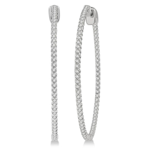 Davis Classics 14k White Gold In/Out 2" Diamond Hoop Earrings