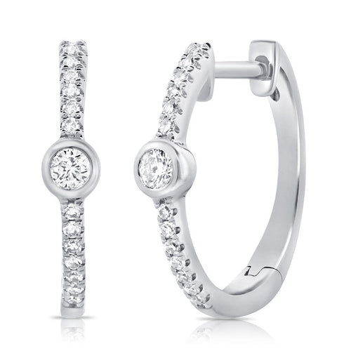 Davis Classics 14k White Gold Small Diamond Huggie Hoop Earrings