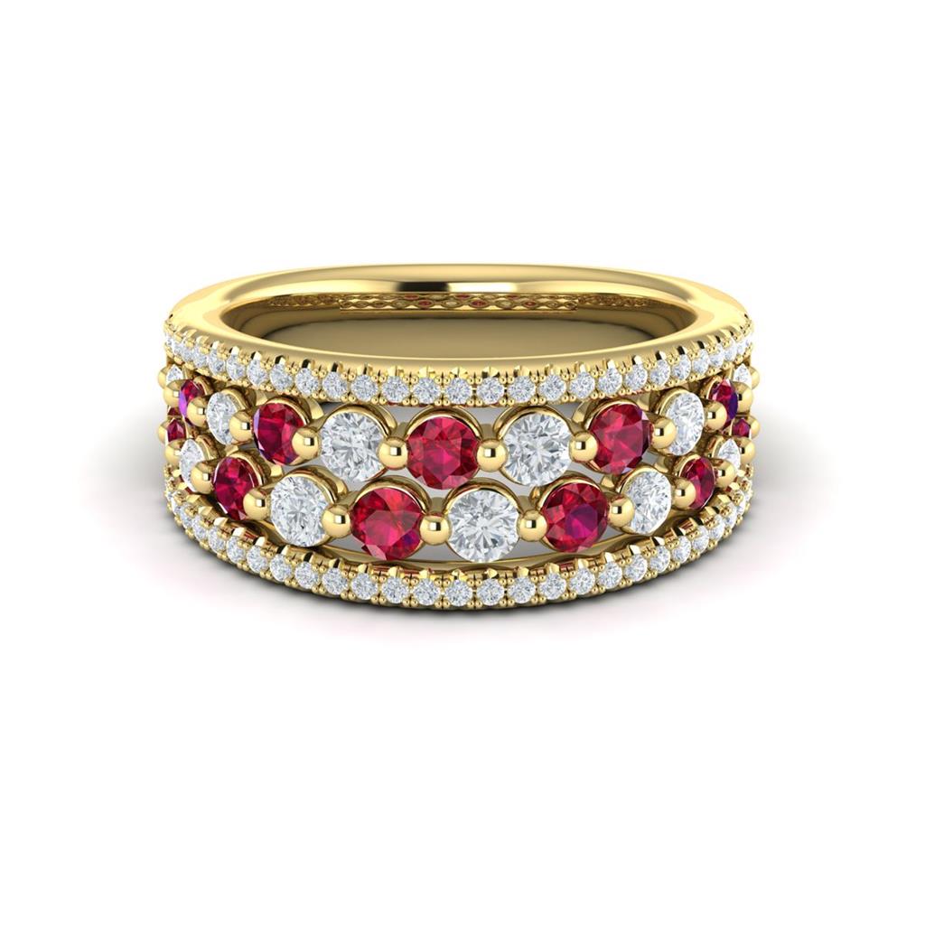 Vlora 14k Yellow Gold Adella Color Collection Checkerboard Design Wide Ruby and Diamond Fashion Band