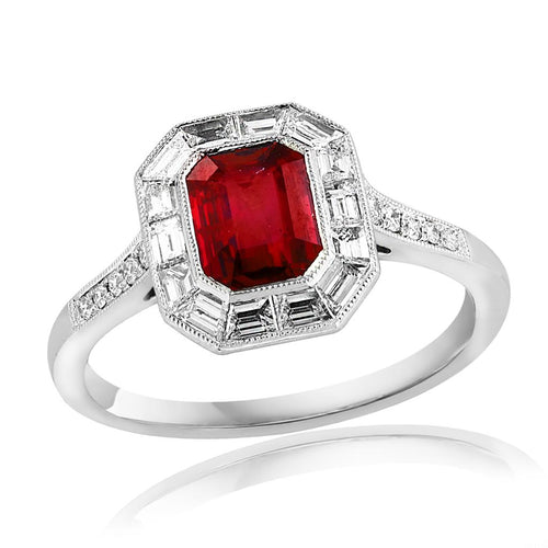 Davis Classics Platinum Vintage Halo Ruby and Diamond Ring