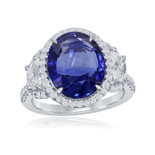 Davis Classics Platinum Halo Three-Stone Blue Sapphire and Diamond Ring
