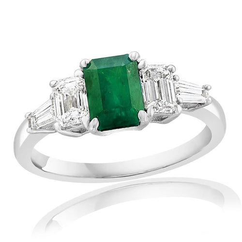 Davis Classics 14k White Gold Three-Stone Zambian Emerald and Diamond Ring