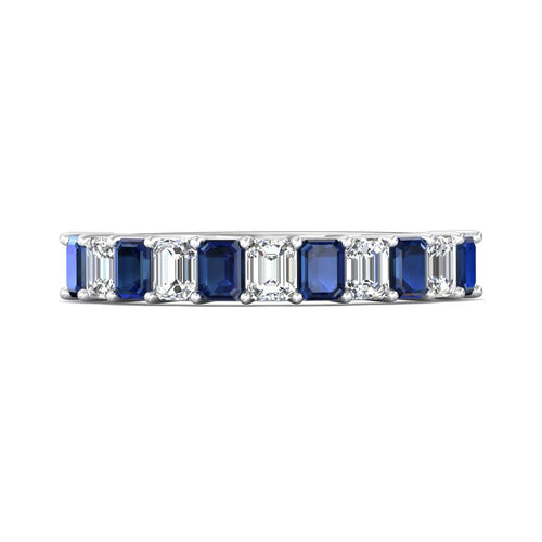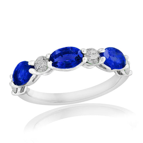 Martin Flyer 14k White Gold Blue Sapphire and Diamond East-West Anniversary Band