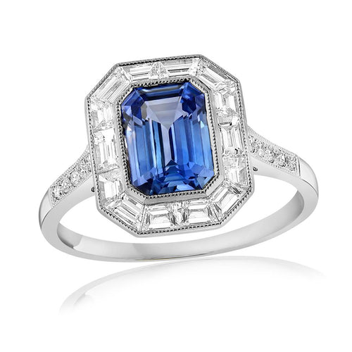 Davis Classics Platinum Vintage Halo Blue Sapphire and Diamond Ring