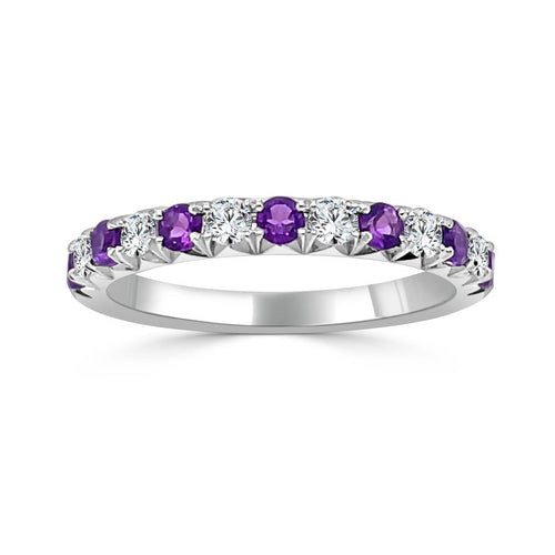 Davis Classics 14k White Gold Stackable Amethyst and Diamond Birthstone Fashion Band