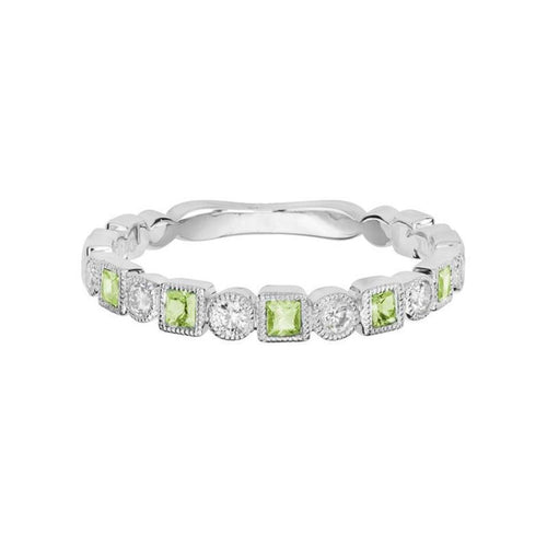 Davis Classics 14k White Gold Peridot and Diamond Milgrain Stackable Band
