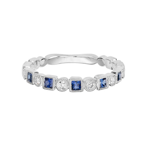 Davis Classics 14k White Gold Stackable Blue Sapphire and Diamond Band