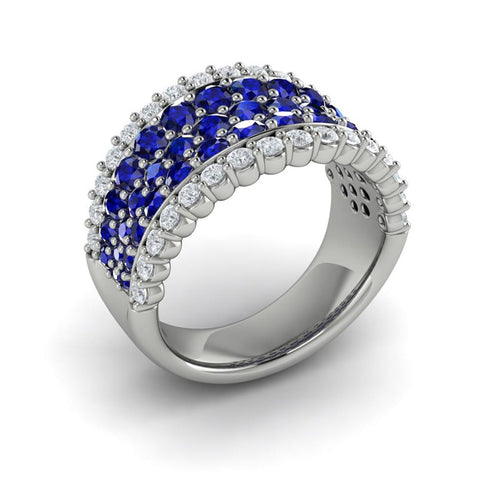 Vlora 14k White Gold Adella Collection Multi-Row Blue Sapphire and Diamond Wide Tapered Domed Band
