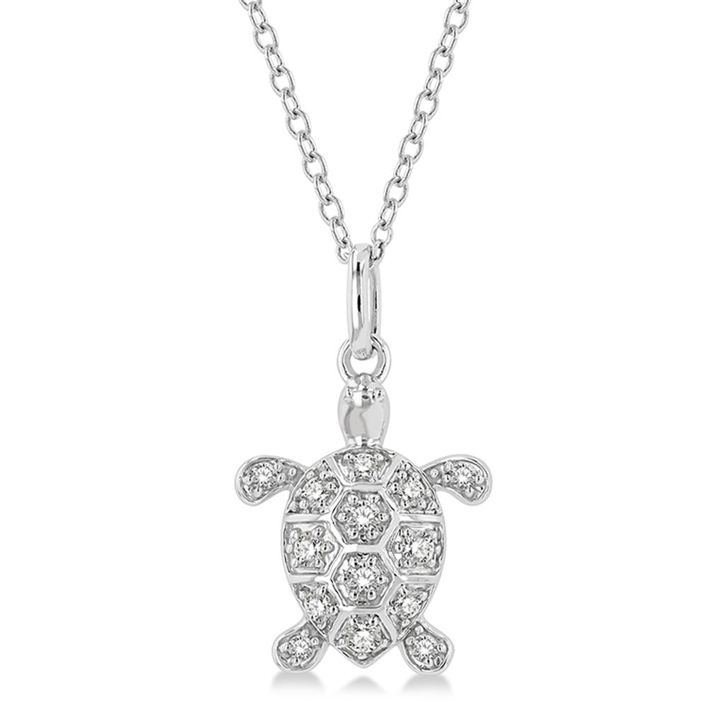 Davis Classics 10k White Gold Diamond Petite Turtle Pendant Necklace