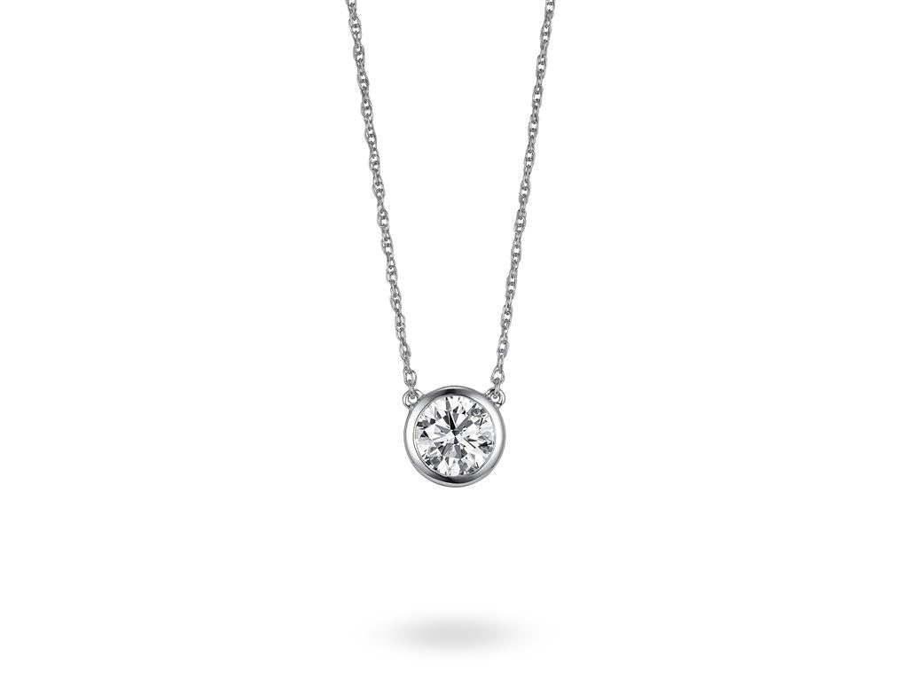 Davis Classics 14k White Gold Diamond by the Yard Solitaire Pendant Necklace